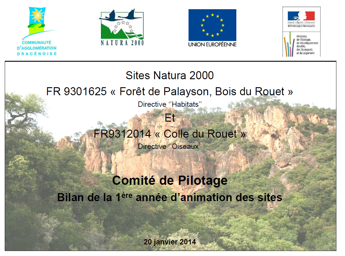 Le COPIL présentant le bilan de la première année d'animation des sites FR9301625 "Forêt de Palayson, Bois du Rouet" et FR9312014 "Colle du Rouet" a eu lieu le 20 janvier 2014.